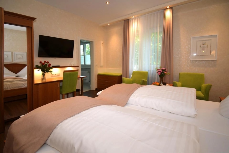 Anna se encuentra en Badenweiler. Aquellos que deseen hacer una actividad pueden ir a Club de Golf Markgräflerland y Club de golf Drei Thermen Golfresort, mientras que quienes deseen conocer los puntos de interés del área pueden optar por Museo Kandertalbahn y Parque de aves de Steinen. Vive al máximo las actividades al aire libre, como paseos a pie o ciclismo en senderos y paseos a caballo. Hotel en Badenweiler con spa de servicio completo y sala de fitness abierta las 24 horas Además de un spa de servicio completo, este hotel para no fumadores tiene una alberca techada y un restaurante. También se ofrecen wifi gratis en las áreas comunes y estacionamiento gratis. Además, la propiedad dispone de una sala de fitness abierta las 24 horas, un bar o lounge y un baño de vapor. Anna tiene 36 opciones de hospedaje con caja de seguridad y periódicos gratis. Estas propiedades con mobiliario y decoración diferentes disponen de área de descanso independiente. Hay disponible televisión de pantalla plana con canales por cable. Los baños están equipados con tina o regadera con tina profunda, batas, pantuflas y amenidades de baño gratuitas. Este hotel en Badenweiler ofrece acceso a wifi gratis. Los servicios para las personas que viajan por negocios incluyen escritorio y teléfono; las llamadas locales, de larga distancia e internacionales son gratuitas (aplican restricciones). Las habitaciones también incluyen secadora de cabello y tabla de planchar con plancha. Se ofrece servicio de limpieza todos los días y es posible solicitar ropa de cama hipoalergénica. Las alternativas de recreación en este hotel incluyen alberca techada, baño de vapor y sala de fitness abierta las 24 horas. Las siguientes actividades de recreación se pueden practicar en la propiedad o en los alrededores. Es posible que apliquen cargos.