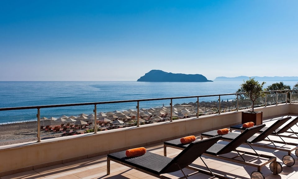 With a stay at Minoa Palace Resort in Platanias, you'll be on the beach, within a 10-minute drive of Agia Marina Beach and Platanias Beach. This beach hotel is 9.2 mi (14.8 km) from Nea Chora Beach and 12.1 mi (19.4 km) from Port of Souda. Relax at the full-service spa, where you can enjoy massages, body treatments, and facials. You're sure to appreciate the recreational amenities, which include 4 outdoor swimming pools, an outdoor tennis court, and a sauna. Additional features at this hotel include complimentary wireless internet access, babysitting (surcharge), and gift shops/newsstands. Grab a bite at Elia, one of the hotel's 4 restaurants, or stay in and take advantage of the 24-hour room service. Snacks are also available at the 4 coffee shops/cafes. Relax with a refreshing drink at the bar/lounge, the beach bar, or one of 2 poolside bars. A complimentary buffet breakfast is served daily from 7:30 AM to 10:30 AM. Featured amenities include complimentary wired internet access, a business center, and dry cleaning/laundry services. Event facilities at this hotel consist of a conference center and meeting rooms. Guests may use a bus station shuttle for a surcharge, and free self parking is available onsite. Stay in one of 266 guestrooms featuring LCD televisions. Rooms have private furnished balconies or patios. Complimentary wired and wireless internet access keeps you connected, and satellite programming provides entertainment. Bathrooms feature showers, designer toiletries, and hair dryers.
