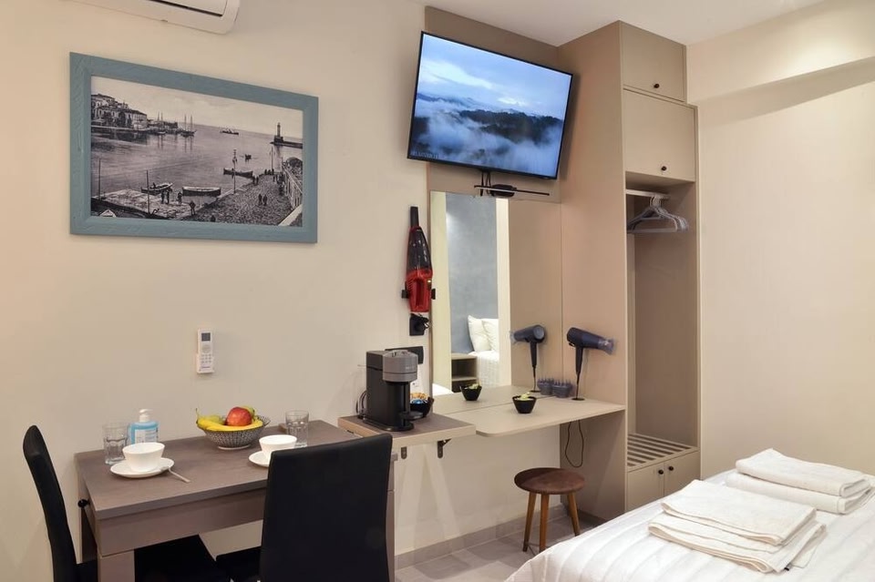 With a stay at Amara Porto Living, you'll be centrally located in Chania, just a 3-minute walk from Old Venetian Harbor and 15 minutes by foot from Nea Chora Beach. This apartment is 6.6 mi (10.6 km) from Agia Marina Beach and 4.8 mi (7.8 km) from Port of Souda. Guests will find features like a virtual front desk. Make yourself at home in one of the 3 air-conditioned rooms featuring kitchenettes with ovens and stovetops. Rooms have private furnished balconies. 43-inch Smart televisions with satellite programming provide entertainment, while complimentary wireless internet access keeps you connected. Conveniences include safes and electric kettles.