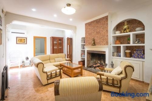 This vacation home features air-conditioned accommodations with a patio and free Wifi.