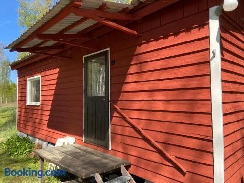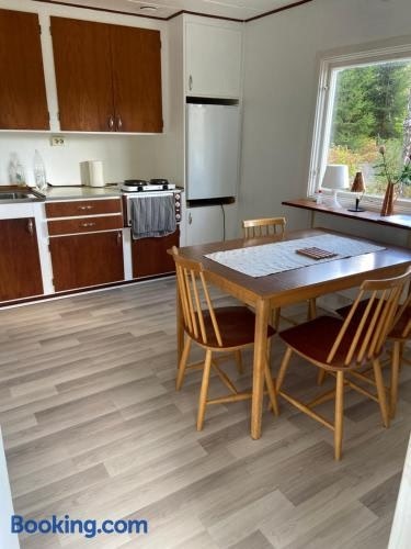 Boasting garden views, Trevlig Röd liten stuga provides accommodation with an open-air bath, around 2 km from Kuppersjöns Beach. This property offers access to a terrace and free private parking.