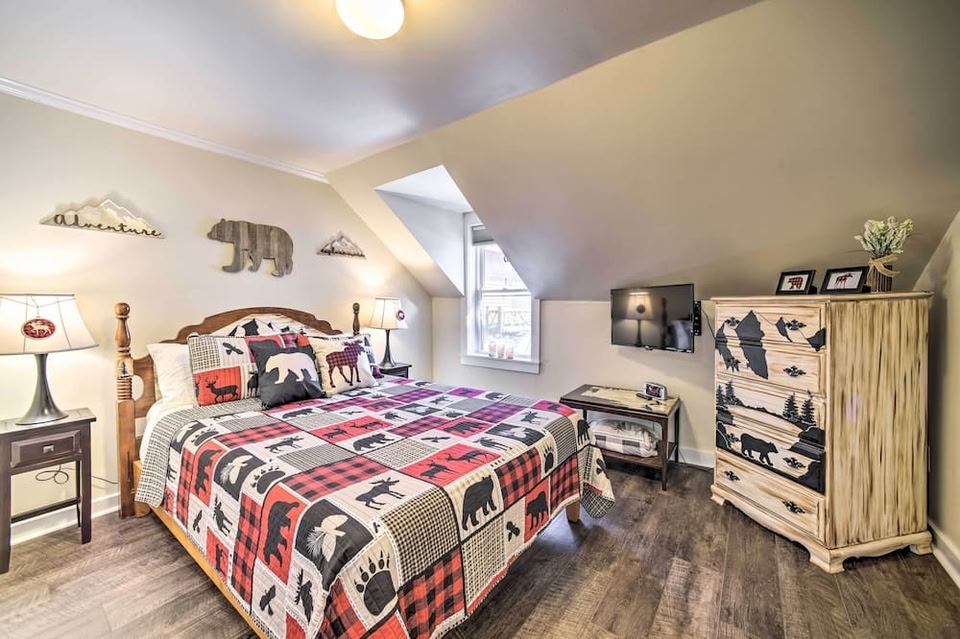 este departamento se encuentra en Hillcrest, Lake Placid. Centro para las Artes de Lake Placid y Lake Placid Winter Olympic Museum son lugares culturales destacados, y algunos de los sitios emblemáticos del área incluyen Estación de ferrocarril panorámica de Lake Placid Adirondack y Centro histórico estatal John Brown Farm. También vale la pena conocer Boots and Birdies y Carrusel Adirondack. Departamento con cocina, a 6 min a pie de Lago MirrorEste complejo de departamentos para no fumadores cuenta con estacionamiento gratis y wifi gratis en las áreas comunes. Este departamento tiene cocinas con hornos, parrillas de estufa, microondas y lavavajillas. También podrás disfrutar de lavadoras, 1.5 baños y tablas de planchar. Las opciones de hospedaje con aire acondicionado de este departamento disponen de tabla de planchar con plancha. En este departamento de 3.5 estrellas, las opciones de hospedaje incluyen cocina con parrilla de estufa, microondas, utensilios de cocina y lavavajillas. Los baños están equipados con tina. Las siguientes actividades de recreación se pueden practicar en la propiedad o en los alrededores. Es posible que apliquen cargos.